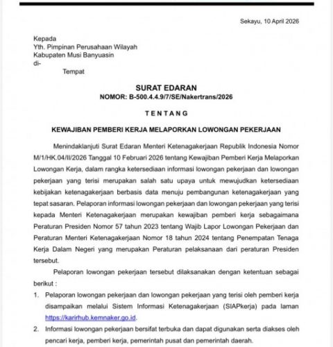 SEKAYU – Pemerintah Kabupaten Musi Banyuasin (Muba) mempertegas komitmennya dalam membenahi data ketenagakerjaan di wilayahnya. Melalui Surat...