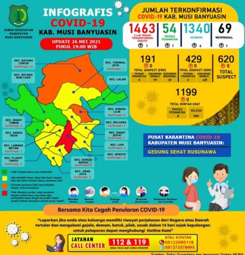 SEKAYU- Gugus Tugas Penanganan COVID-19 Muba, Rabu (26/5/2021) mengkonfirmasi penambahan 4 kasus sembuh, 1 positif dan 1 kasus meninggal...