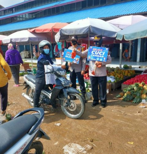 Himbauan Masyarakat Patuhi Protokol kesehatan Polres Muba Turun kepasar