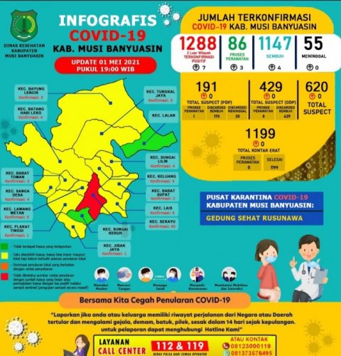SEKAYU- Gugus Tugas Penanganan COVID-19 Muba, Sabtu (1/5/2021) mengkonfirmasi penambahan 4 kasus sembuh dan 7 terkonfirmasi positif COVID-19....