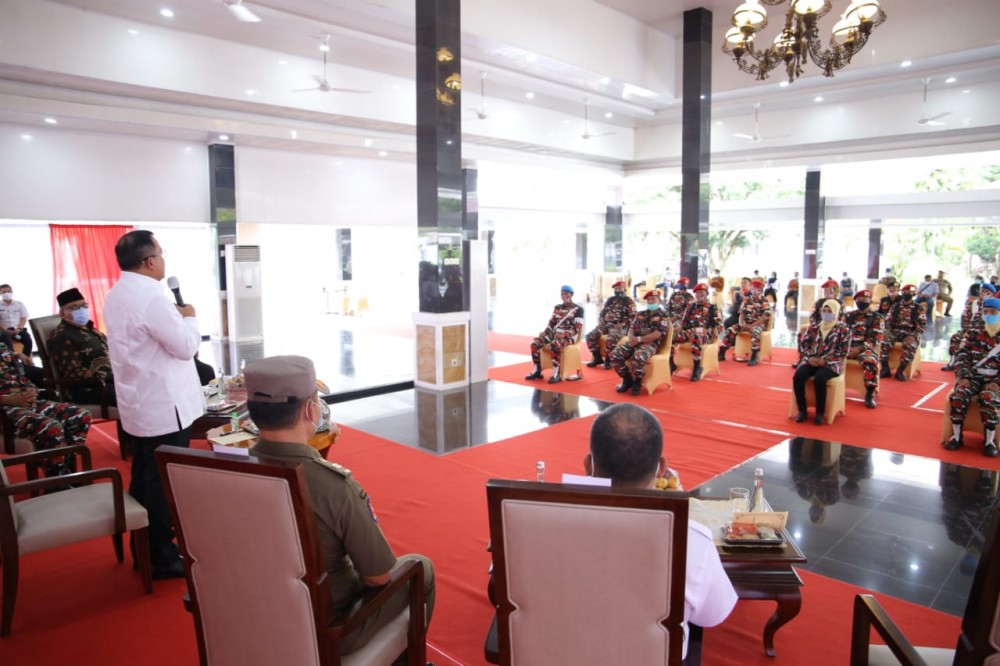SEKAYU, MUBA- Datang dan bertemu langsung dengan orang nomor satu di Kabupaten Musi Banyuasin, Organisasi Masyarakat (Ormas) Laskar Merah Putih cabang Muba menyampaikan apresiasi Bupati Dr H Dodi Reza Alex Noerdin Lic Econ MBA atas keberhasilan dalam mensukseskan pembangunan di Musi Banyuasin diantaranya kebijakan Perda No 2 tahun 2020 tentang Penyerapan tenaga kerja lokal.