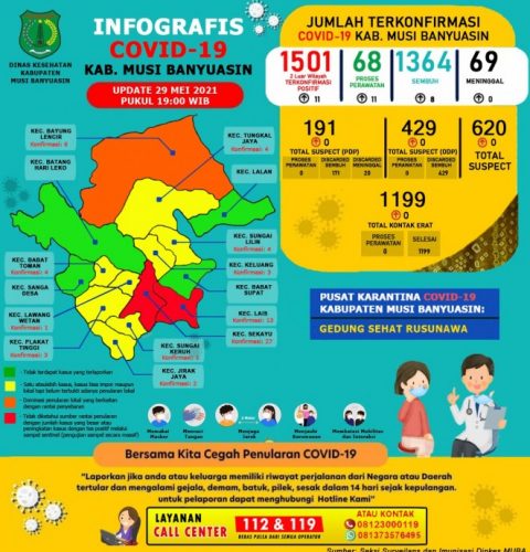 SEKAYU- Gugus Tugas Penanganan COVID-19 Muba, Sabtu (29/5/2021) mengkonfirmasi penambahan 8 kasus sembuh dan 11 terkonfirmasi...