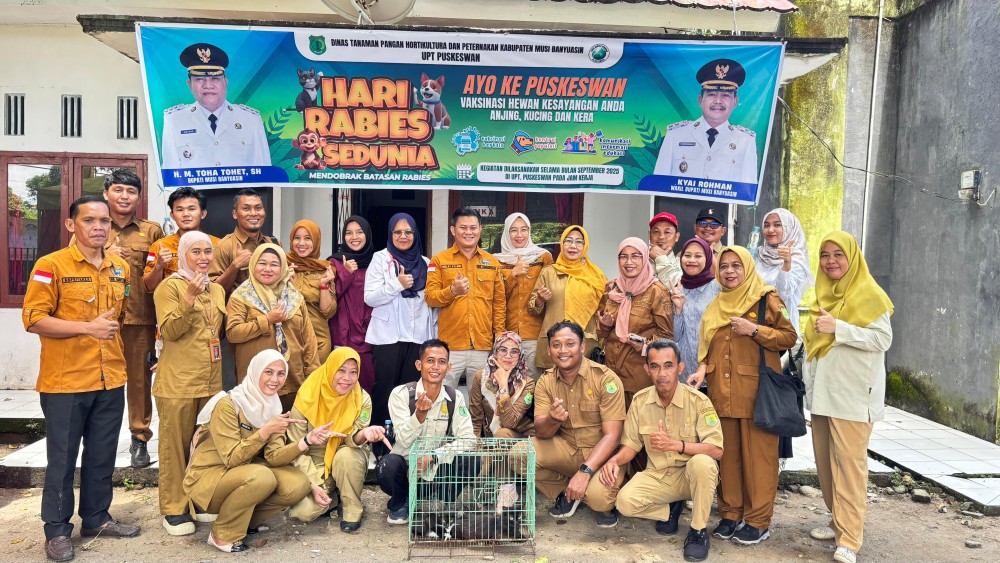 Kita merah Putih.com - Memperingati Hari Rabies Sedunia, Dinas Tanaman Pangan Hortikultura Dan Peternakan Musi Banyuasin gelar layanan vaksinasi gratis hewan peliharaan, Rabu, 25 September 2025