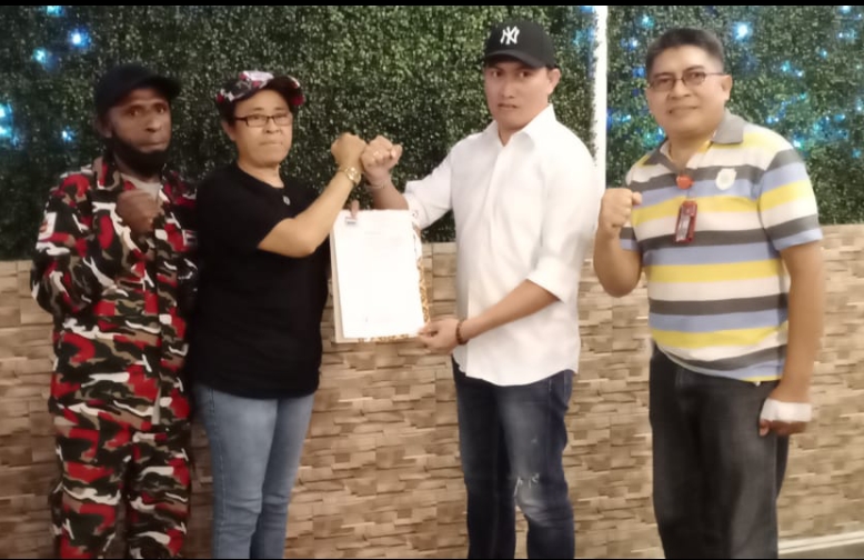 LMP Mada Jayapura melalui Sekretaris Mada Papua, Kabid Okk, Ketua Harian Macab Kota Papua, dan beberapa pengurus yang lain, Menyerahkan Surat Mandat Ke Bung Efendy Sebagai Kamacab LMP kota Jayapura.