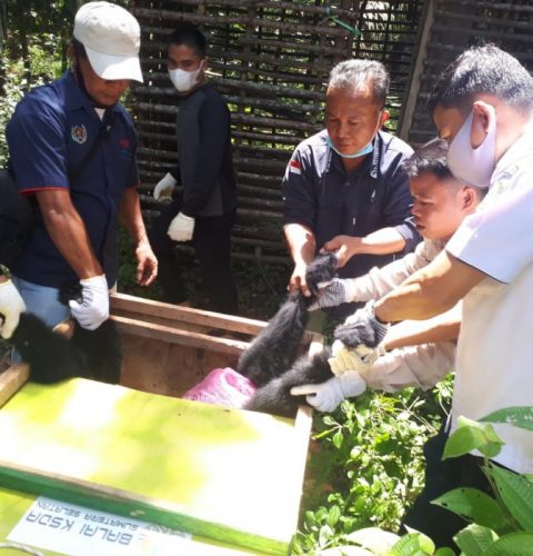 LAIS- Satu ekor hewan Siamang langka (Symphalangus Syndactylus) diserahkan Hairul Yusama warga Dusun III Desa Lais Kabupaten Musi...