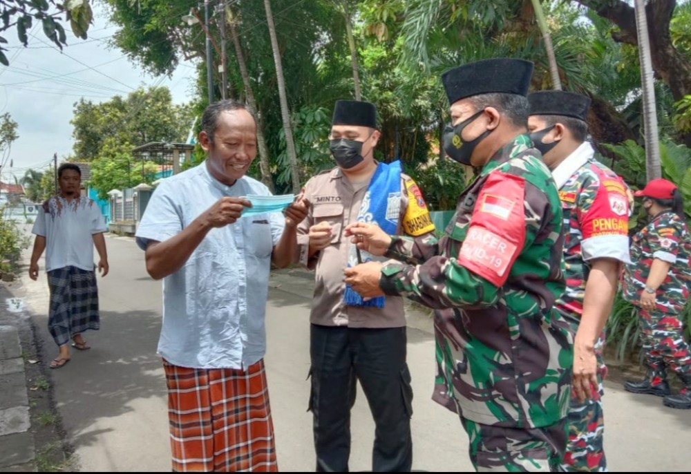 Koramil 0820/01 melalui Babinsa Kelurahan Ketapang ucapkan terimakasih dan apresiasi yang luar biasa kepada Laskar Merah Putih yang peduli pada keadaan bangsa kita saat ini melalui program Giat Jumat Berkah peduli Covid 19 dengan membagikan masker pada Jamaah sholat Jumat secara rutin dalam wawancaranya