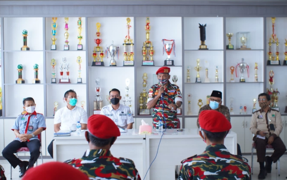 Sekayu - Sumsel, Bertempat di Aula Gedung Kantor Dinas Pemuda, Olahraga dan Pariwisata Kab Muba, Puluhan Loreng Laskar Merah Putih yang di komandoi Kamacab LMP Muba Satoto Waliun Nyeruduk masuk nyaris tanpa hambatan bahkan kedatangannya sudah di tunggu dan langsung di sambut Kadispopar Muba, Muhammad Fariz, SSTP, MM dan turut mendampingi pula Ferri Afandi, ST. M. Si selaku Kabid Olahraga, Busriyanto, SH. M.Si selaku Kabid Pariwisata di Wakili Kasi Adrian Susanto, SE M.Si, July Alamsyah Kabid Pramuka, Drs. Khairunsyah, MM, sebagai Kabid Pemuda, Andre Pramono, ST, MM sebagai Kabid Sarpras Dinas Pemuda dan Olahraga Kab Muba, Kamis 04/03/2021.