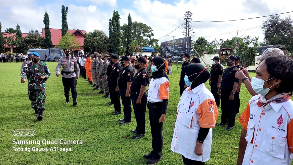 Kegiatan gelar pasukan Ops Ketupat matoa 2021 Polres Merauke di hadiri sebanyak 250 personil dengan Komandan apel Ipda Eko Irianto, SE yang terdiri dari TNI, Polri, Satpol PP, Dishub, Basarnas, Pramuka, dan Mitra Polri ORARI dan SENKOM kegiatan berjalan dengan aman dan kondusif.