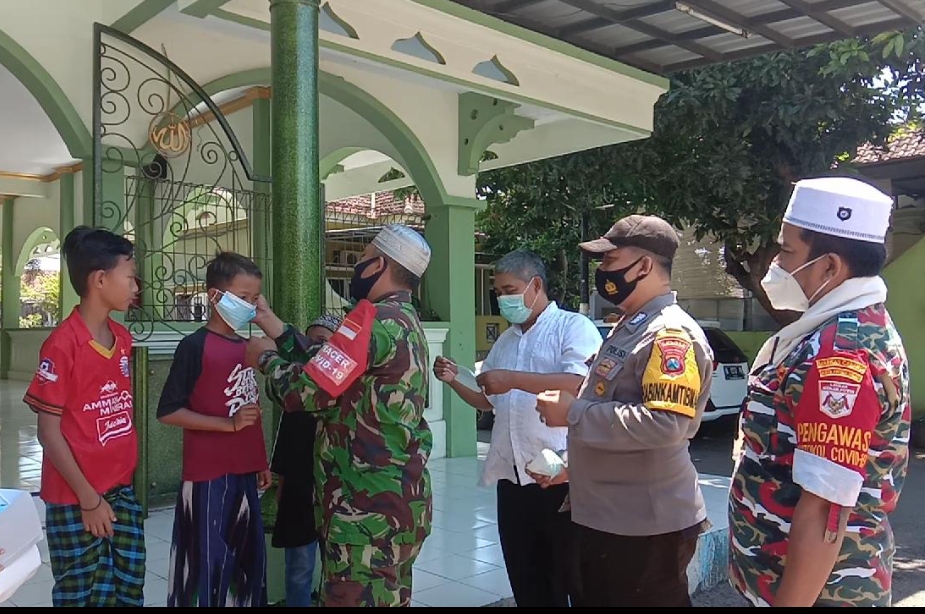 Kota Probolinggo - Jawa Timur, Koramil 0820/02 - Polsek - Laskar Merah Putih Kecamatan Kedopok - Komando Rayon Militer 0820/02, Bersama Polsek melalui Babinsa dan Babinkamtibmas Kelurahan Kareng Lor. bersama Ormas Laskar Merah Putih laksanakan kegiatan Peduli Covid 19 Jumat Berkah di Masjid Baiturrahman Kelurahan Kareng Lor (Jumat 16/4/2021)