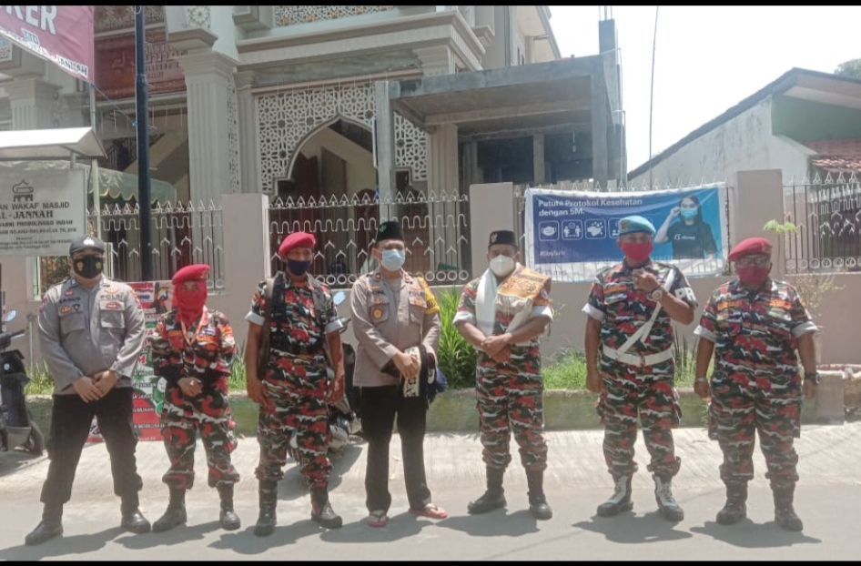 Kota Probolinggo - Jawa Timur, Polresta Probolinggo - Laskar Merah Putih, Markas Cabang Laskar Merah Putih Kota Probolinggo, mendampingi Wakapolresta Probolinggo Kompol Muhammad Hoiril SH dalam Giat Jumat Berkah di masjid Al Jannah Perum Asabri Kanigaran, Jumat 26/03/2021